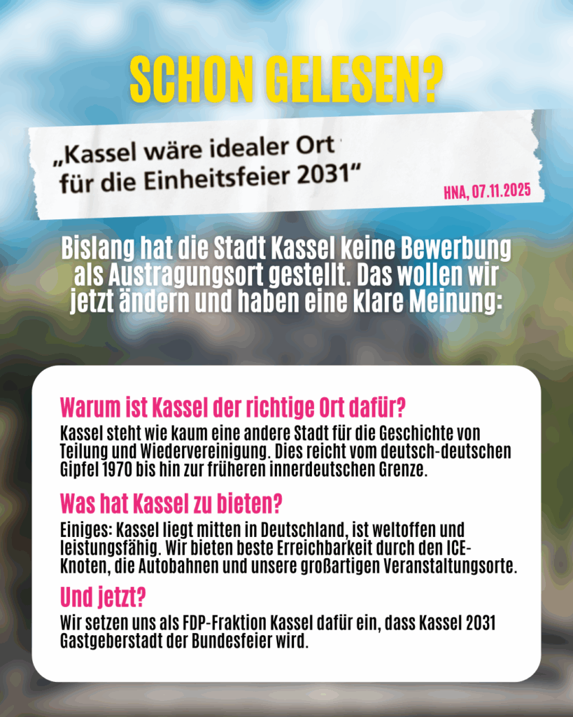 Kraftvolle Sanierung statt Fahren auf Verschleiß Dr. Andreas Buschmeier Fraktionsvorsitzender Kassel, 10.11.2025 – Die Koalition der Vernunft aus FDP, CDU und Grünen hat in der Stadtverordnetenversammlung die Verlängerung des Konsolidierungsvertrags mit […]